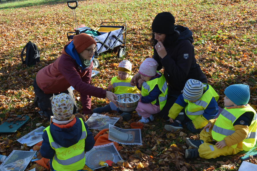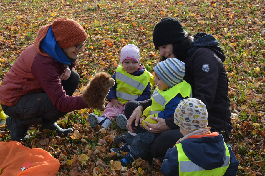 Zum Abschluss sammelten die Kinder neues Laub für Meckis Weidenkorb und sangen den Igel in den Winterschlaf.