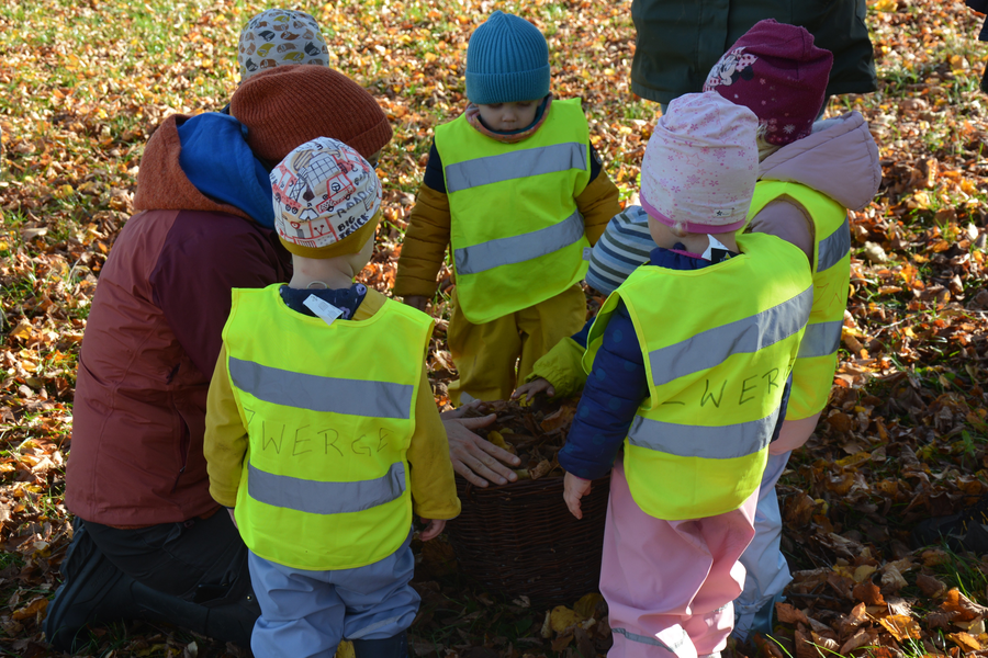 Zum Abschluss sammelten die Kinder neues Laub für Meckis Weidenkorb und sangen den Igel in den Winterschlaf.